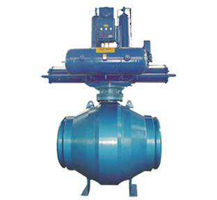 全焊接埋地球閥,包括閥體、閥座,閥體內部安裝有球體,球體與閥體內壁之間設有閥座,球體上部連接有閥桿,所述閥體的兩側分別為閥蓋,所述閥蓋上相對于閥座的注脂孔處設有注脂管路,所述注脂管路的一端設有閥座注脂機構,所述閥體的空腔上分別連接有中空腔泄壓支路和中空腔泄放支路,所述中空腔泄壓支路的一端設有中空腔泄壓機構,所述中空腔泄放支路的一端設有中空腔泄放機構。本實用新型全部采用焊接方式,結構更加緊密,使得密封性能更好,且閥桿上部連接有閥桿加長桿,便于在地上對閥門進行控制;各個支路的操作端均水平設置,方便控制;多個功能的相輔相成,確保球閥的正常工作。